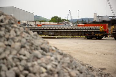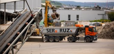 Das Recycling von mineralischen Materialien und die damit verbundene Herstellung von Ersatzbaustoffen bieten ein hohes Potenzial zur Reduktion von CO2-Emissionen. Die SER/RUZ-Unternehmensgruppe ist bestrebt, den Kreislauf mineralischer Materialien zu schließen und die Aufbereitungsquote der Sekundärbaustoffe fortlaufend zu erhöhen. Ein herausragendes Beispiel ist das Gleisschotterrecycling. Von dem angelieferten „Alt-Gleisschotter“ werden, abhängig von der Sortenreinheit des Materials, bis zu 95 Prozent wieder in den Kreislauf zurückgebracht. Zusätzlich wird ein großer Teil des Materials per Bahn angeliefert, was wiederum deutlich CO2-Emissionen im Vergleich zum Transport per Lkw einspart. Das aufbereitete Material kann zum einen als „Gleisschotter“ wieder im Gleisbau und zum anderen in verschiedenen Körnungen zur Wiederverwendung geliefert werden. Dieses Verfahren vermeidet nicht nur den Eingriff in die Natur zur Gewinnung von Primärbaustoffen, sondern spart auch durchschnittlich das Dreieinhalbfache an CO2-Emissionen ein.